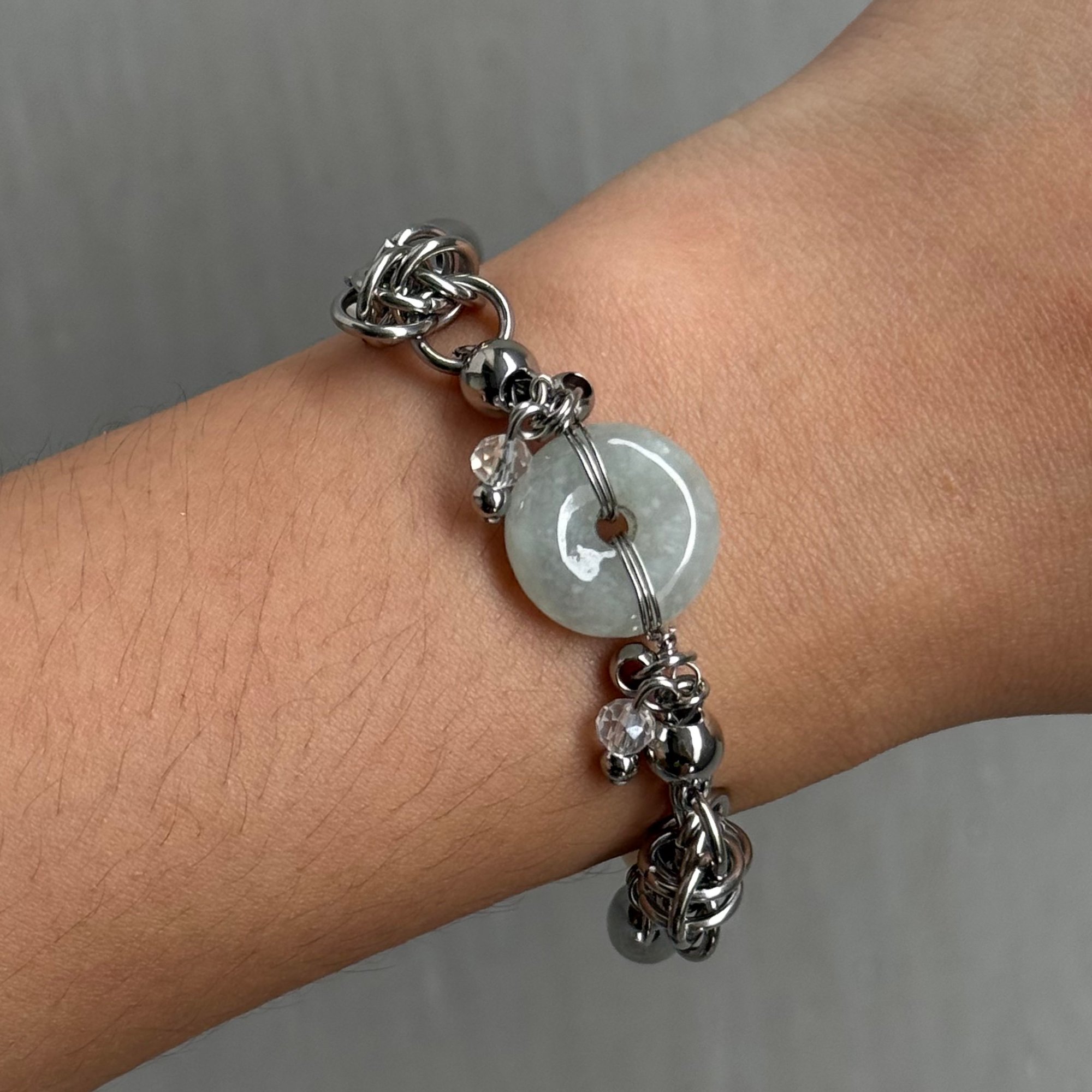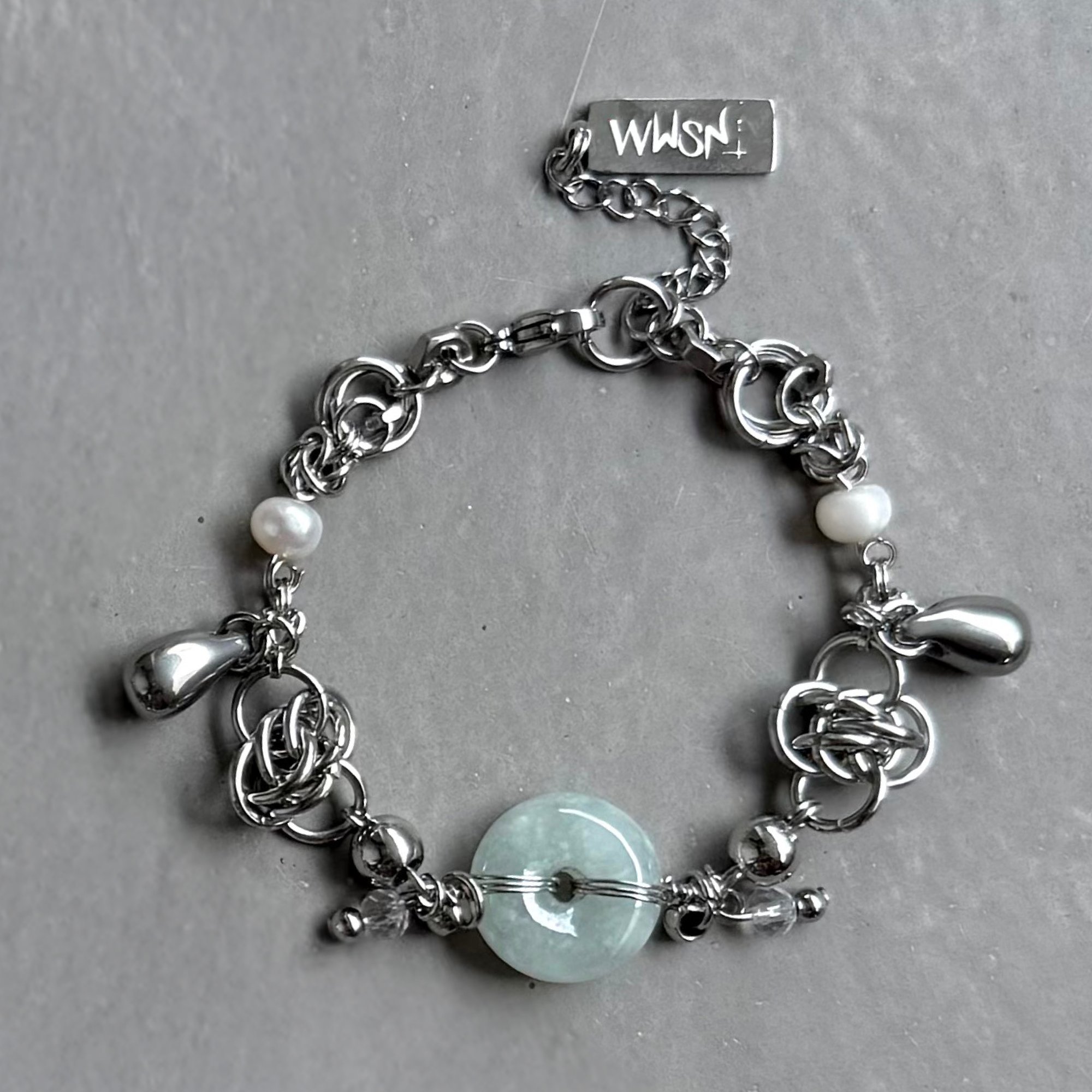 Your classic donut jade bracelet perfect for the upcoming new year. Made with stainless steel findings and freshwater pearl for energy cleansing.