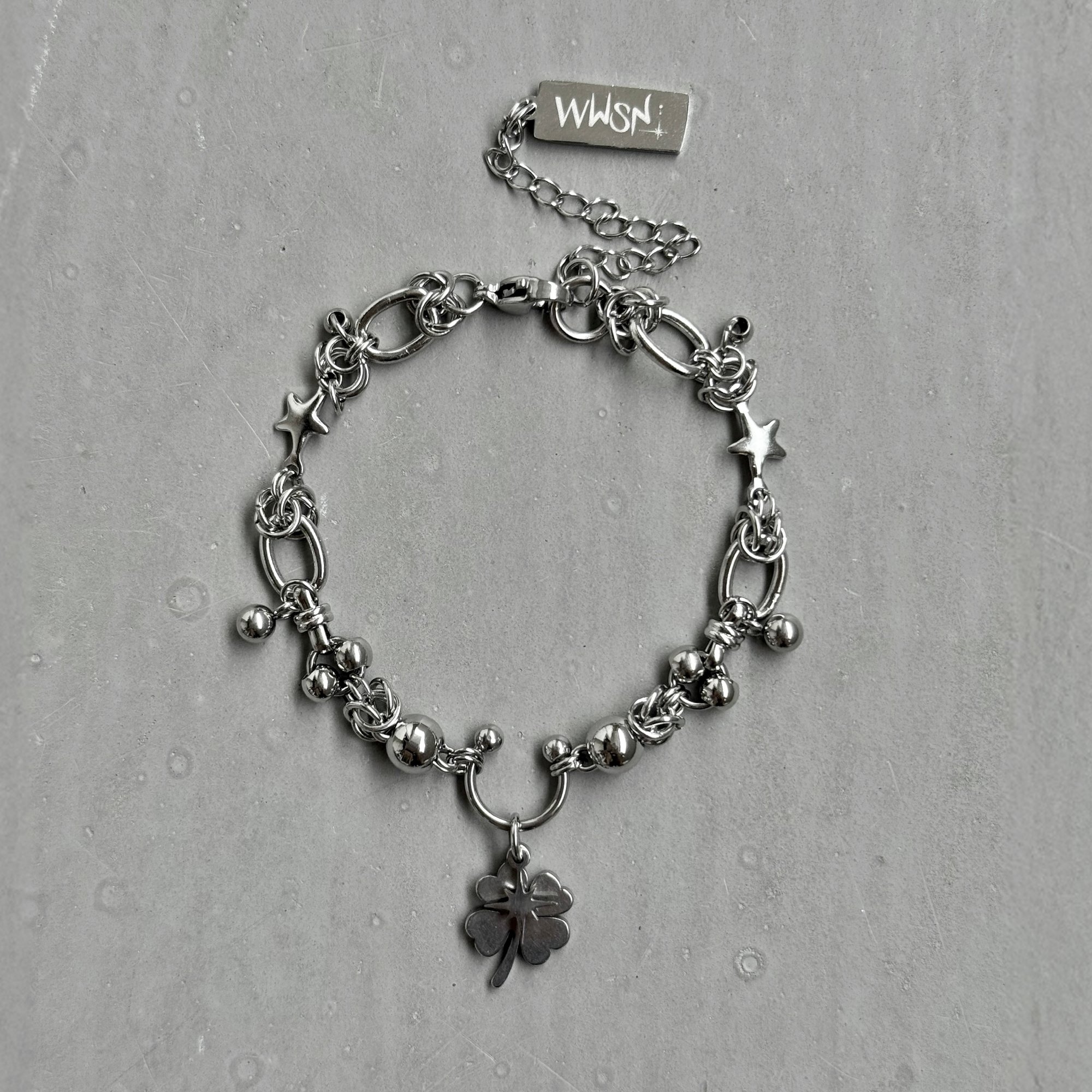 A crowd's favourite from the ENHYPEN 1009 Collection! A lucky clover dangling on a septum ring, this bracelet will give you the luck you need in every aspect you desire for. Made with stainless steel findings.